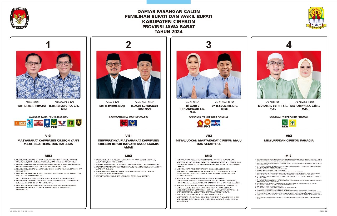 Daftar Pasangan Calon Peserta Pemilihan Bupati dan Wakil Bupati Cirebon Tahun 2024: