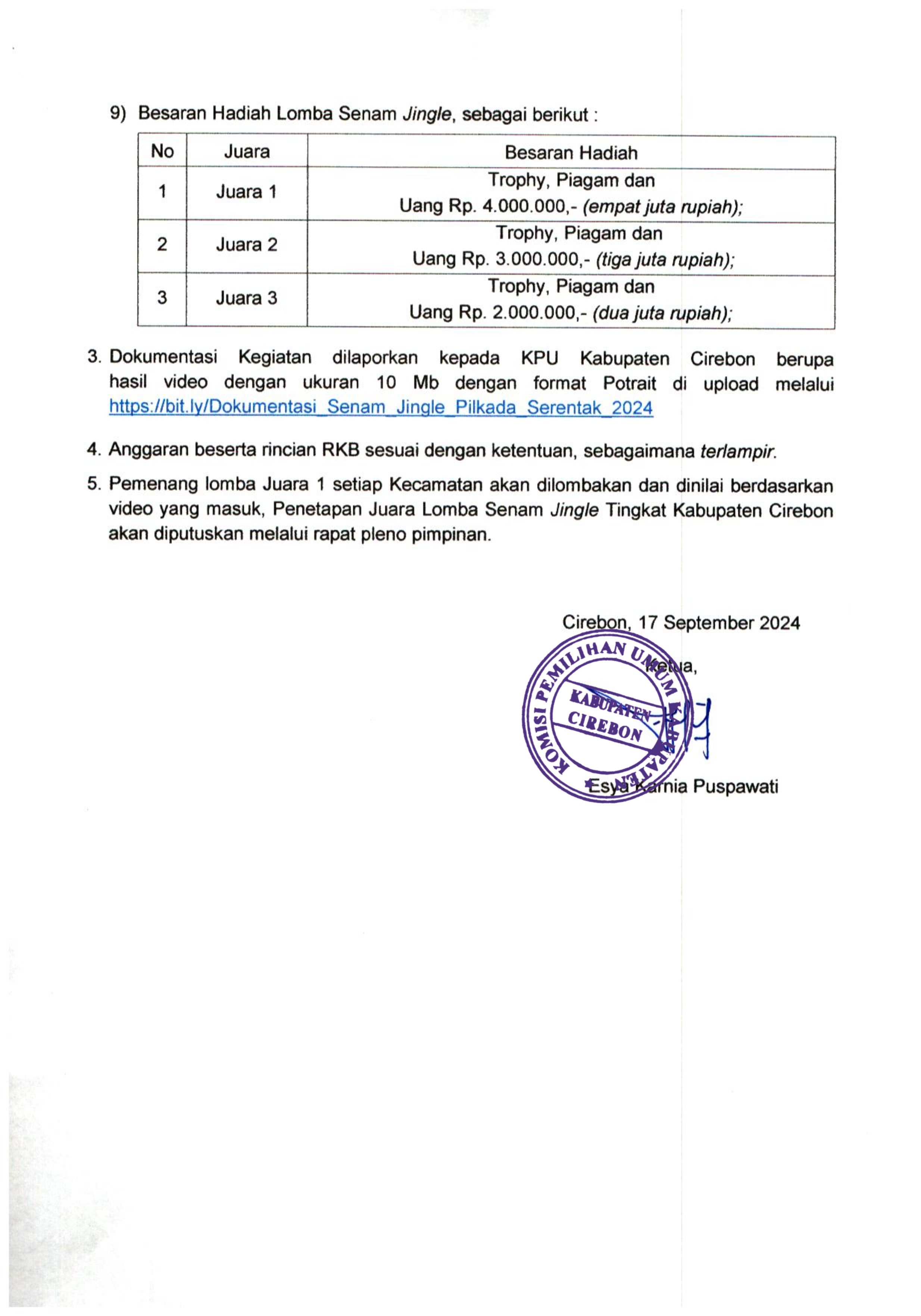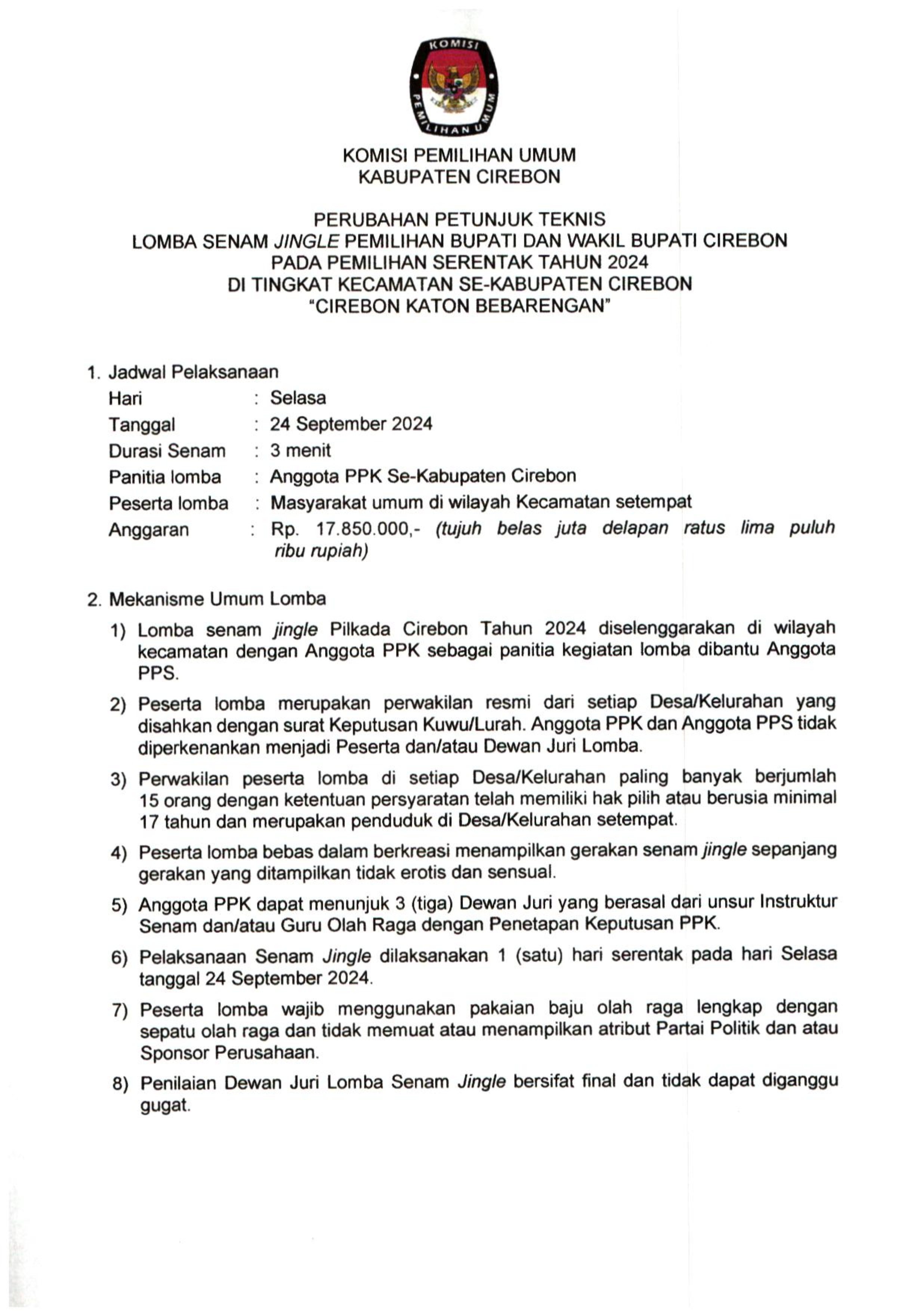 LOMBA SENAM JINGLE PEMILIHAN BUPATI DAN WAKIL BUPATI CIREBON PADA PEMILIHAN SERENTAK TAHUN 2024