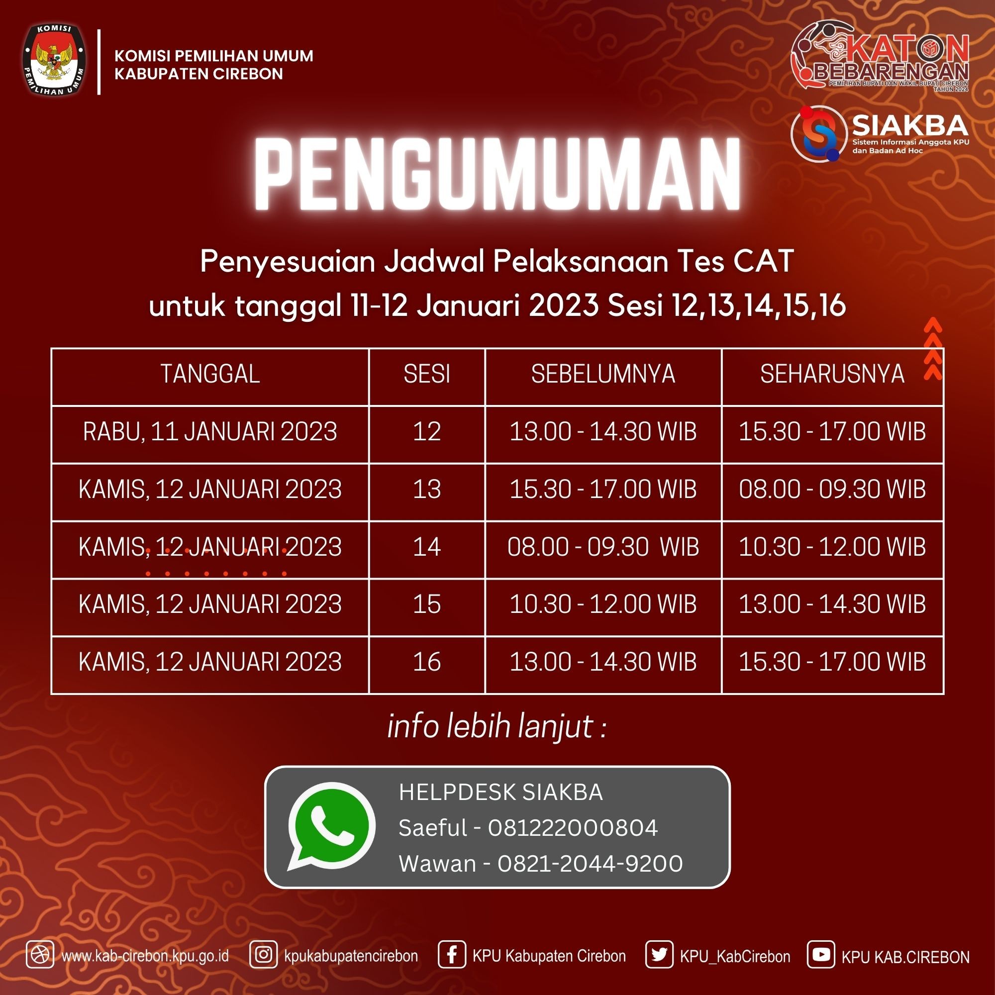 Penyesuaian Jadwal Pelaksanaan Tes CAT untuk tanggal 11-12 Januari 2023 Sesi 12,13,14,15,16