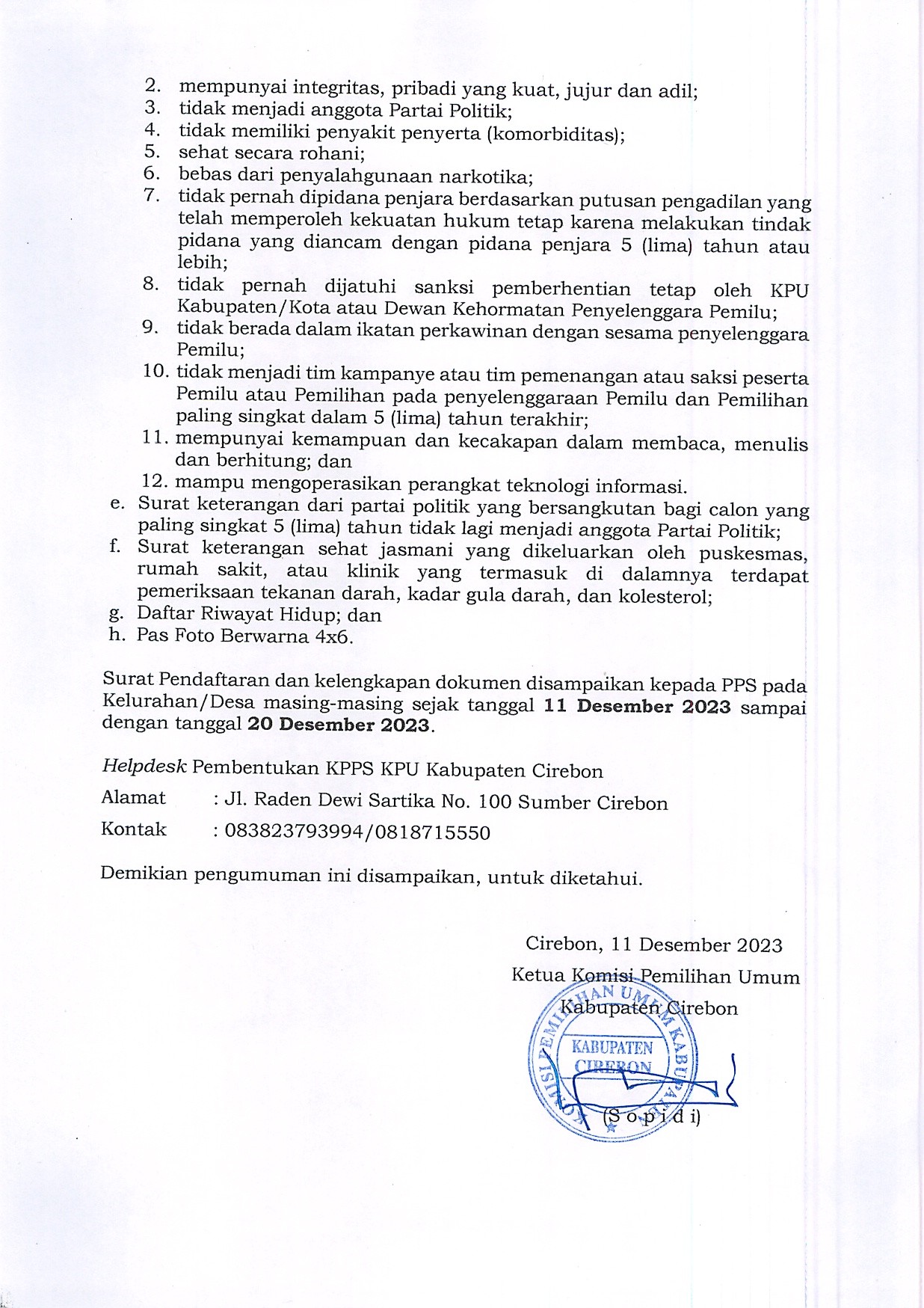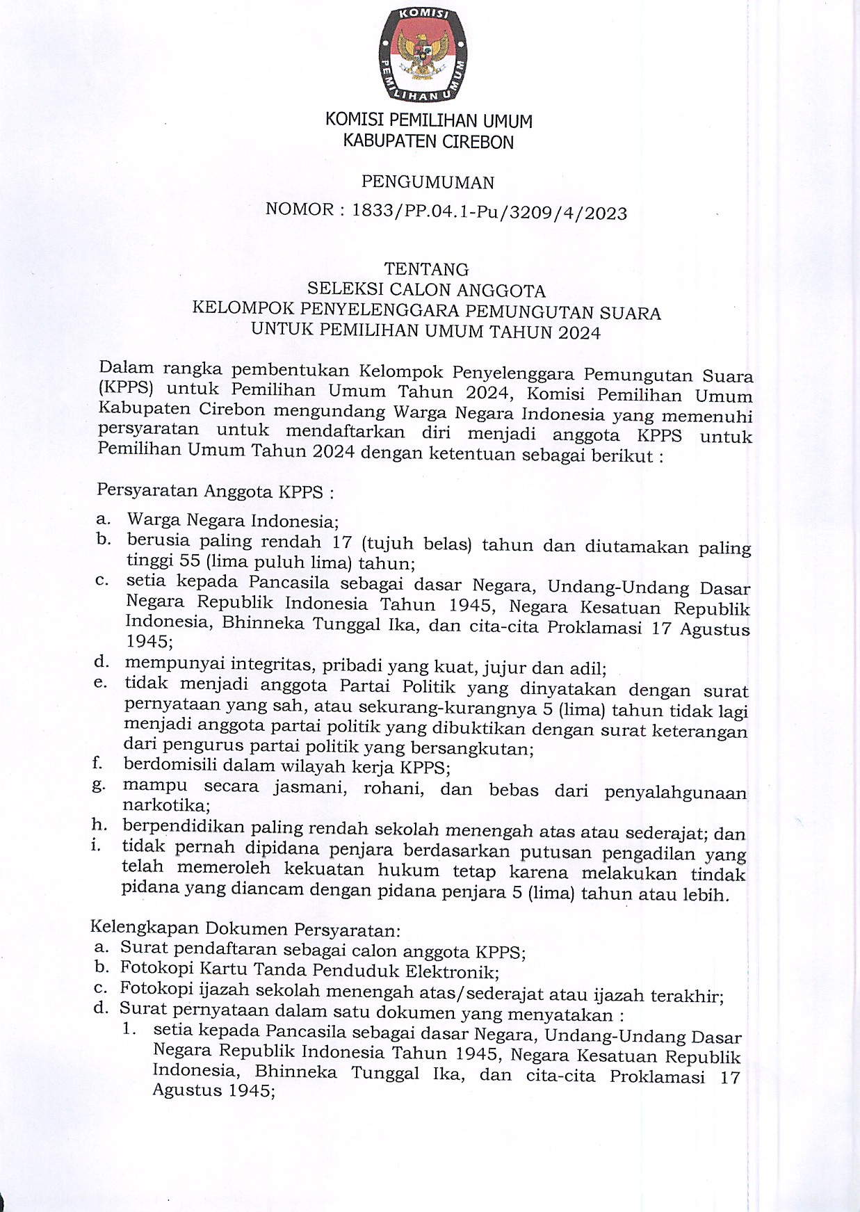 PERSYARATAN DAN KELENGKAPAN DOKUMEN PERSYARATAN KPPS PEMILU TAHUN 2024