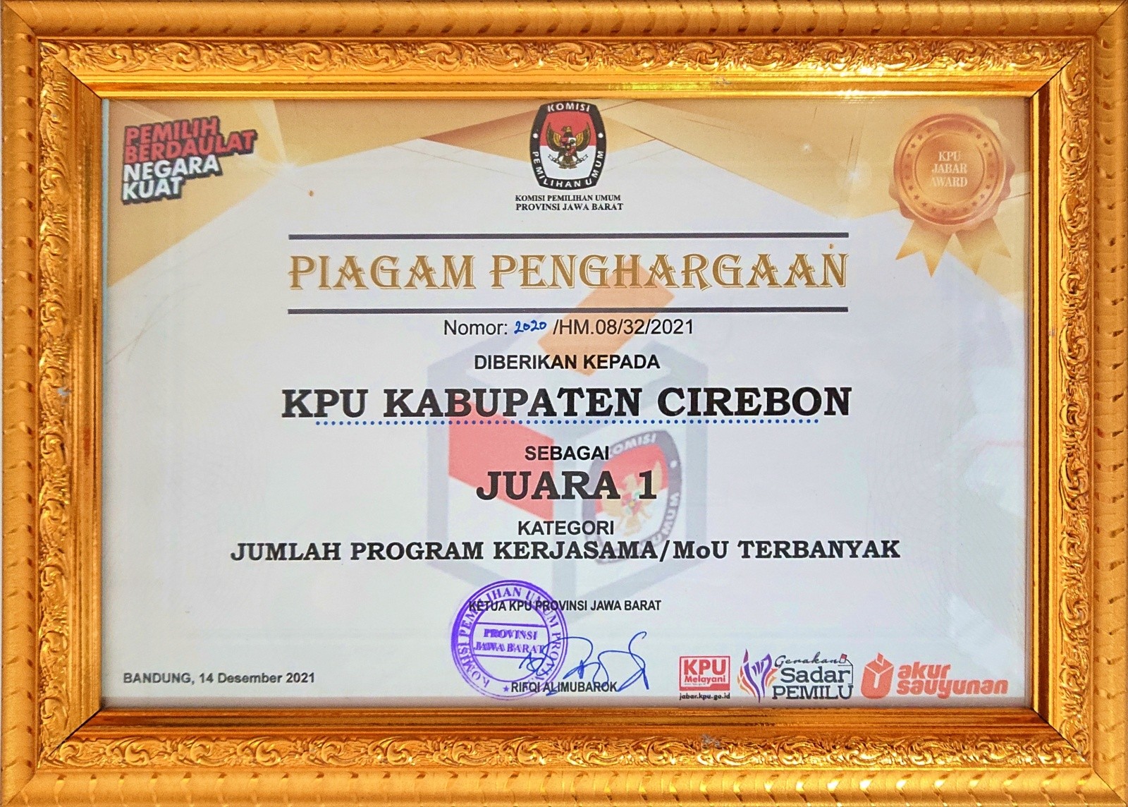 KPU Kabupaten Cirebon Tingkat KPU Jawa Barat Tahun 2021