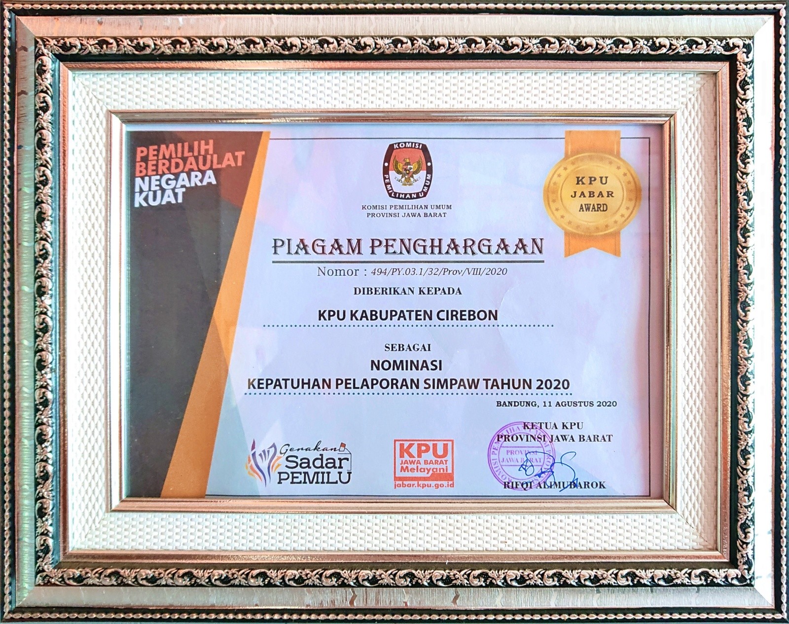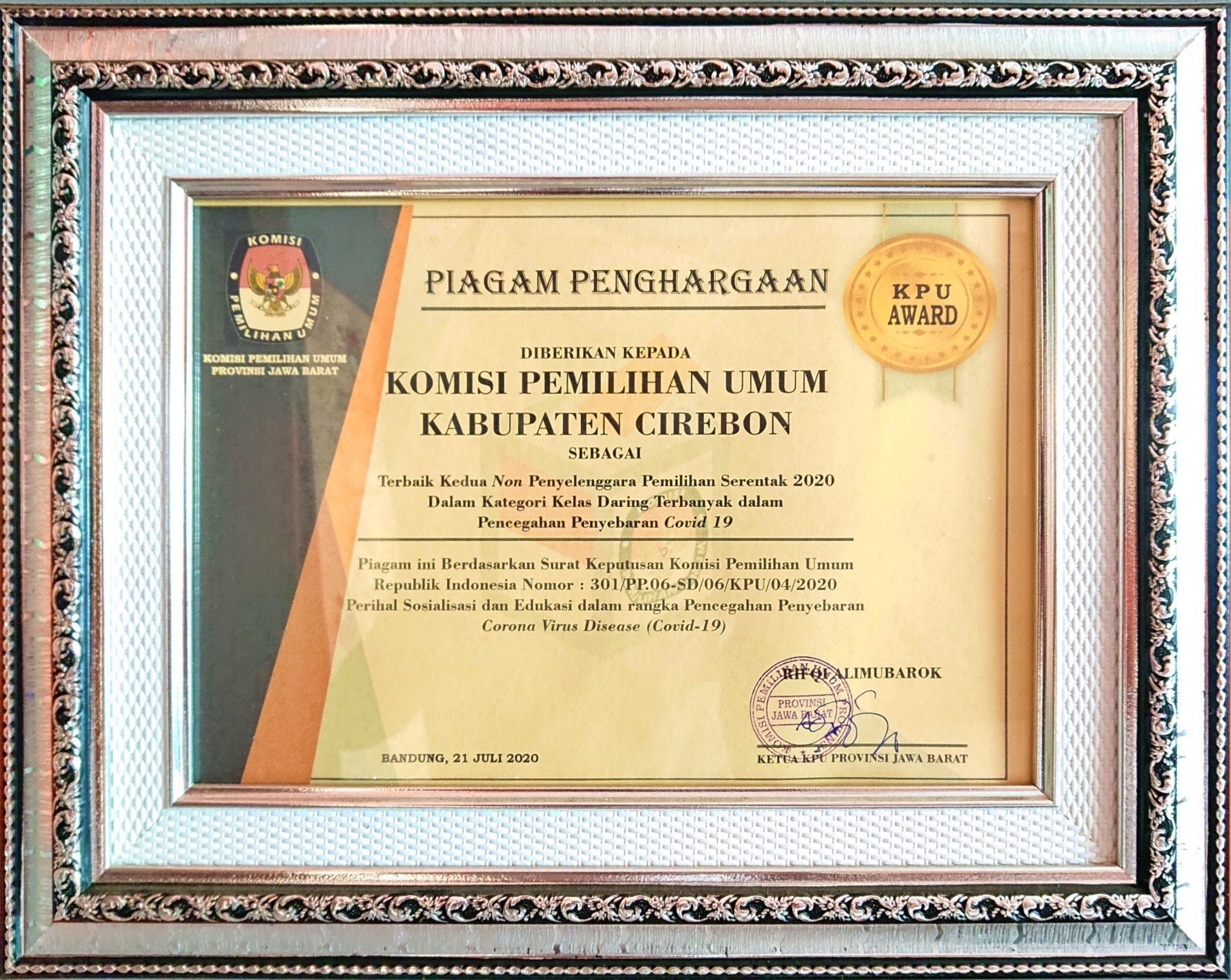 KPU Kabupaten Cirebon Tingkat KPU Jawa Barat Tahun 2020