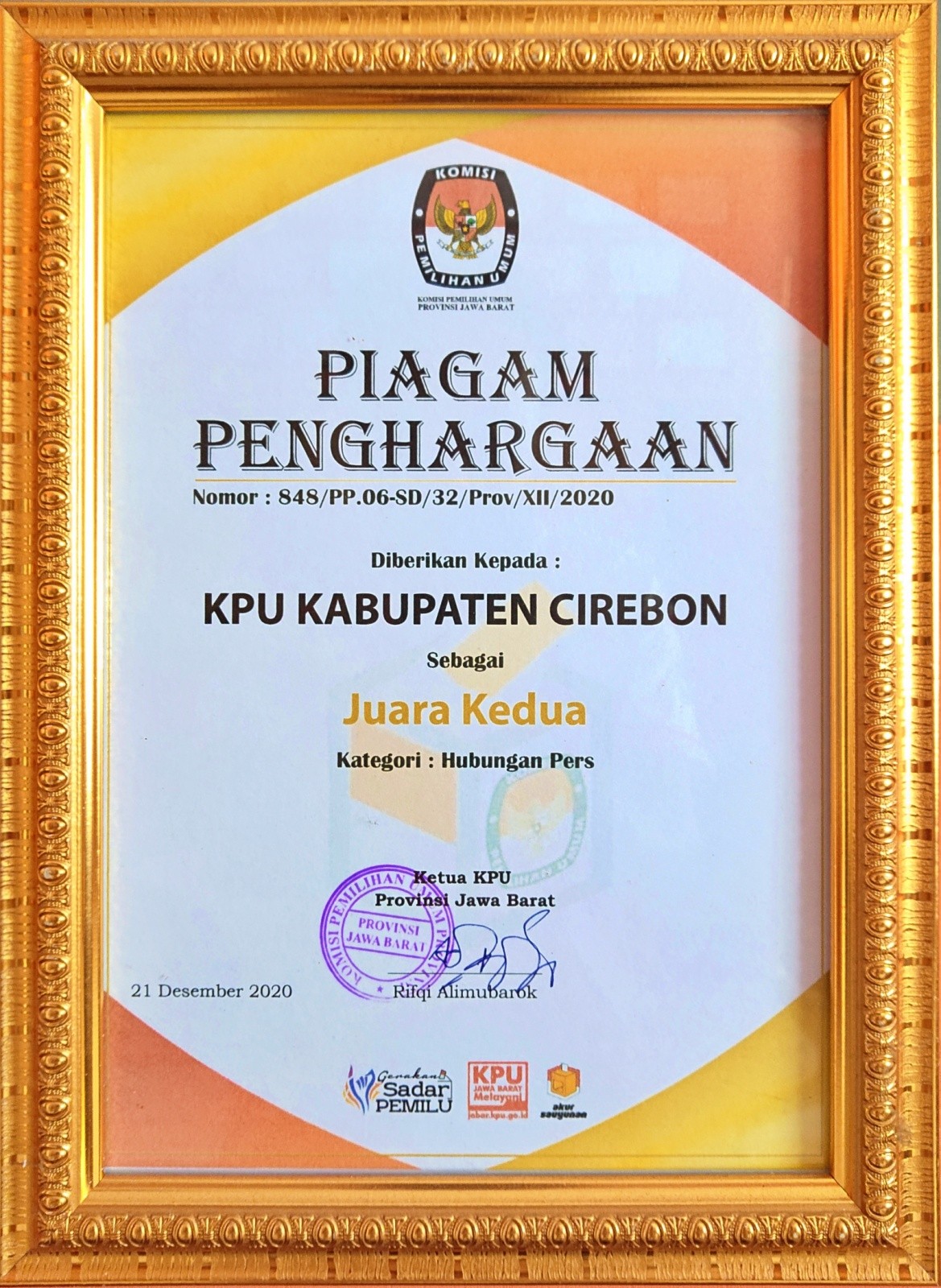 Juara 2 Kategori Hubungan Pers Tahun 2020