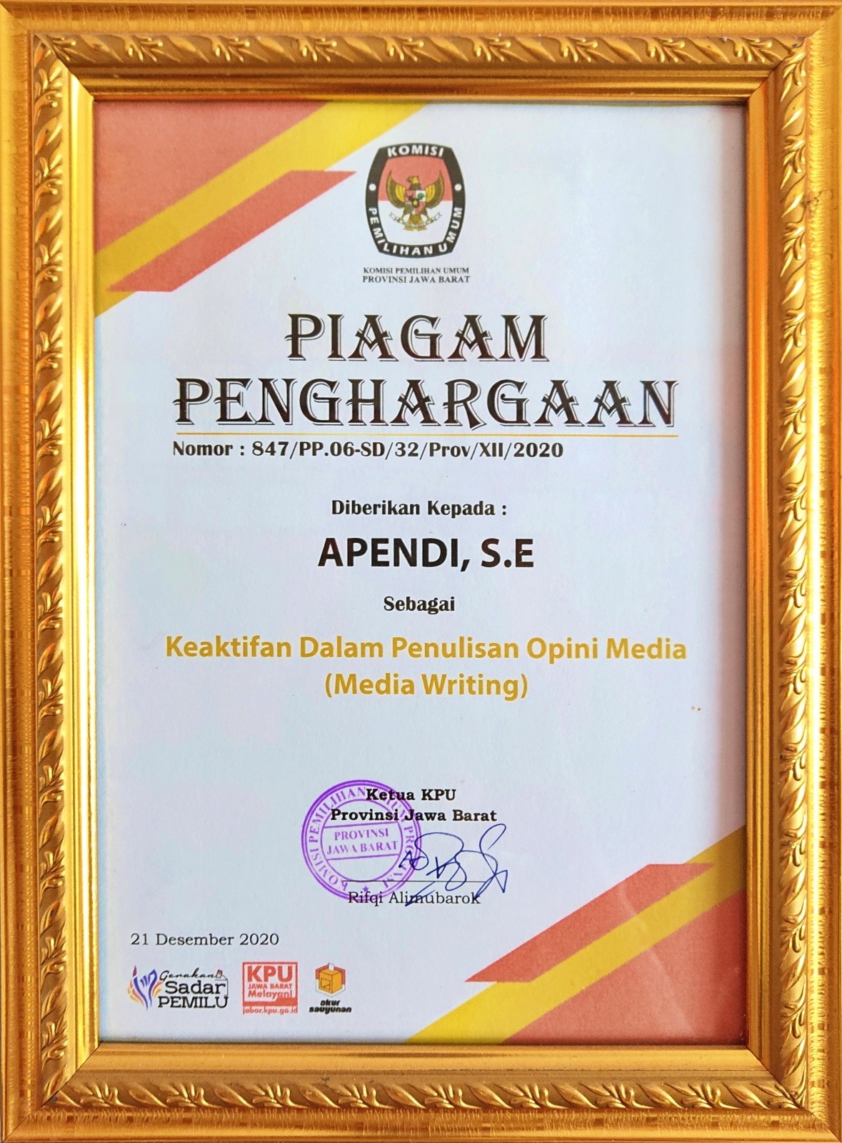 Apendi, SE (Anggota KPU Kab Cirebon) Tingkat KPU Jawa Barat Tahun 2020