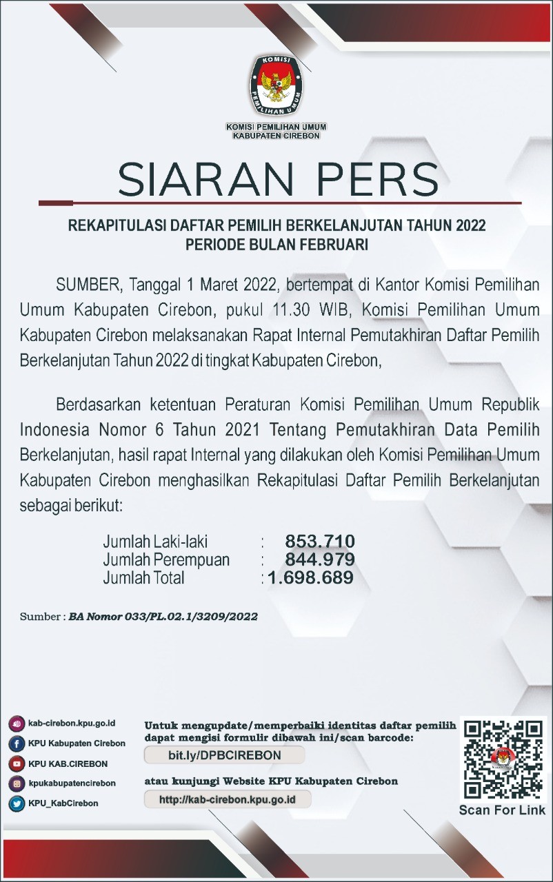 Rekapitulasi Daftar Pemilih Berkelanjutan Bulan Februari Tahun 2022 Kabupaten Cirebon