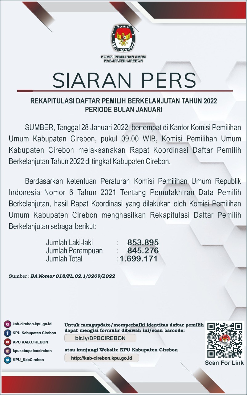 Rekapitulasi Daftar Pemilih Berkelanjutan Bulan Januari Tahun 2022 Kabupaten Cirebon