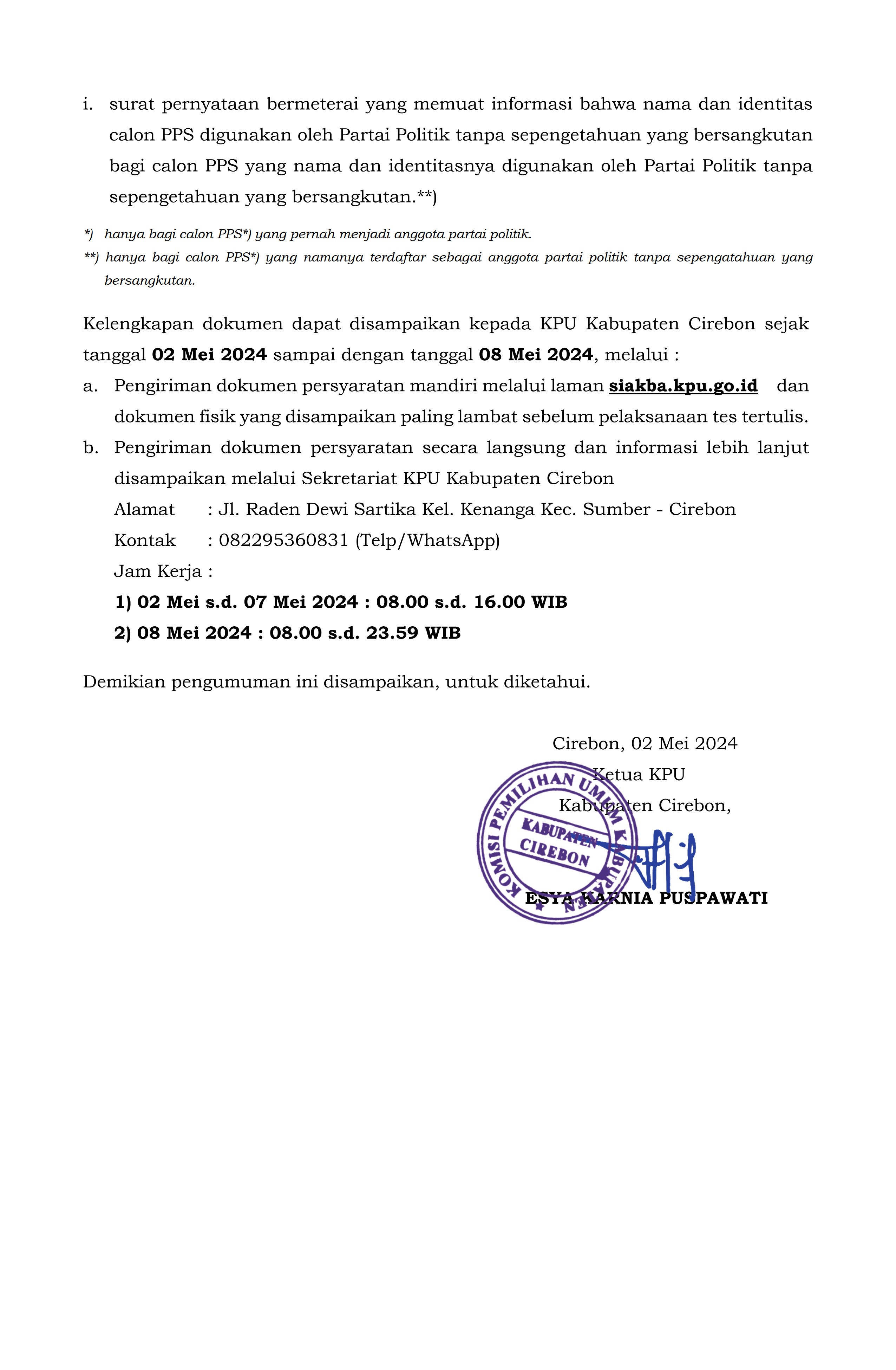 Seleksi Calon Anggota Panitia Pemungutan Suara Untuk Pemilihan Gubernur dan Wakil Gubernur Jawa Barat, Bupati dan Wakil Bupati Cirebon Tahun 2024