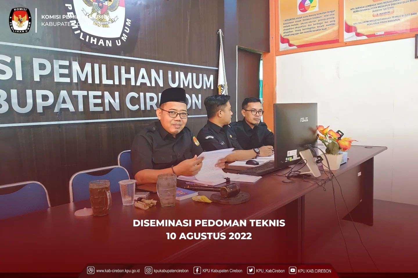 Rabu (10/08/22) Apendi Kadiv Teknis Penyelenggaraan, Ruly Ruslian Fauzi Kasubag Teknis Penyelenggaraan dan Pemilu dan Partisipasi dan Hubungan Masyarakat dan Operator Sipol KPU Kabupaten Cirebon mengikuti kegiatan diseminasi pedoman teknis secara daring yang diselenggarakan oleh KPU Provinsi Jawa Barat.