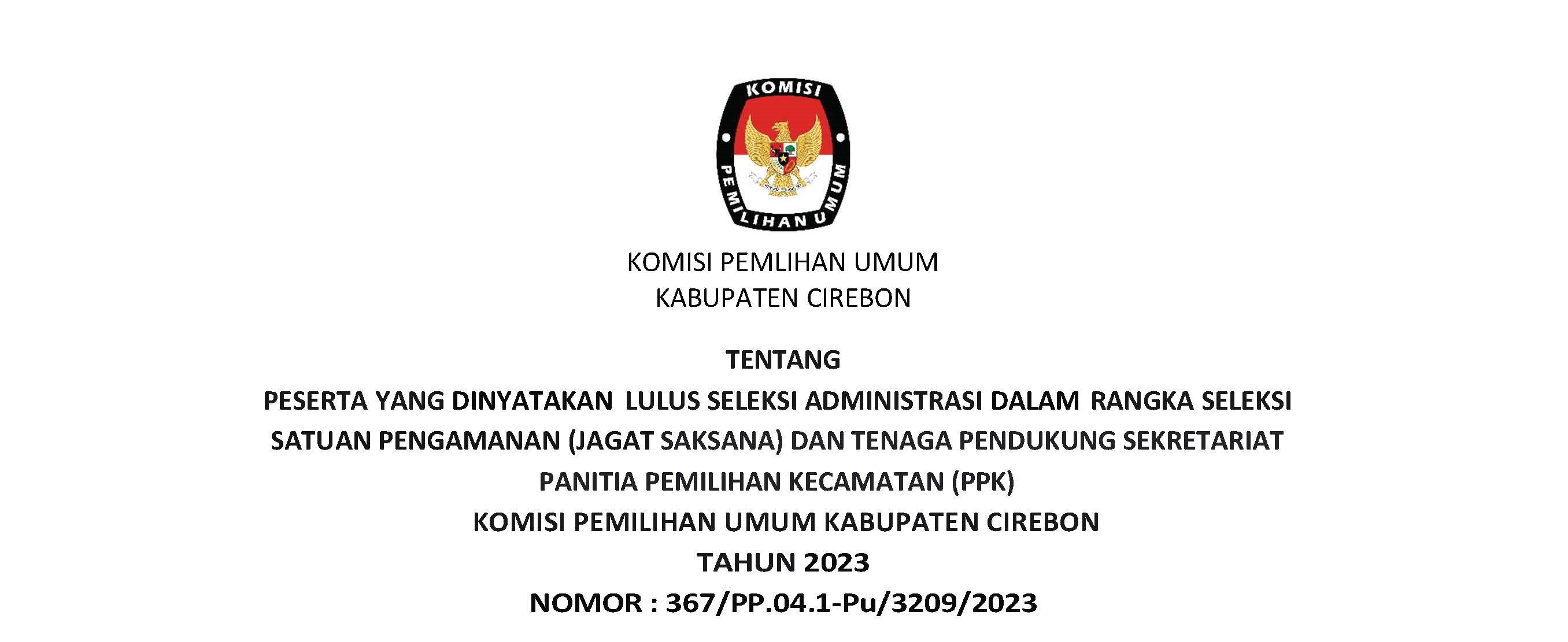 Sekretaris Komisi Pemilihan Umum Provinsi Jawa Barat, memberi kesempatan kepada putra – putri terbaik bangsa untuk menjadi Tenaga Administrasi, Satuan Pengamanan (Jagat Saksana), Pengemudi, Pramubakti dan Tenaga Pendukung Sekretariat PPK Tahun Anggaran 2023, dengan ketentuan sebagai berikut :