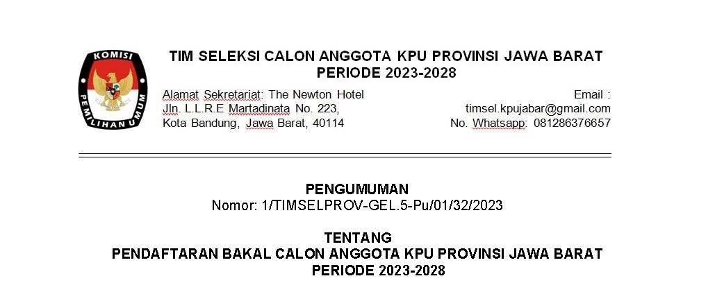 Apabila terdapat perubahan jadwal seleksi akan diinformasikan lebih lanjut melalui website KPU Provinsi Jawa Barat https://jabar.kpu.go.id/.