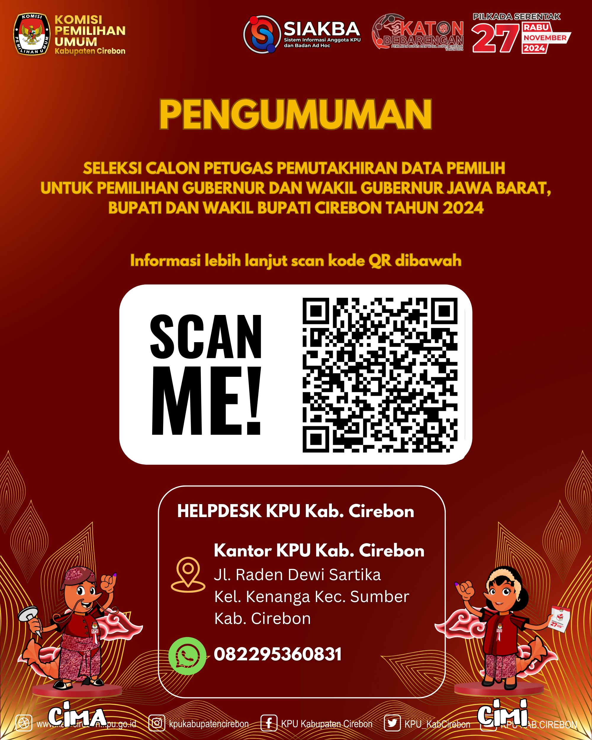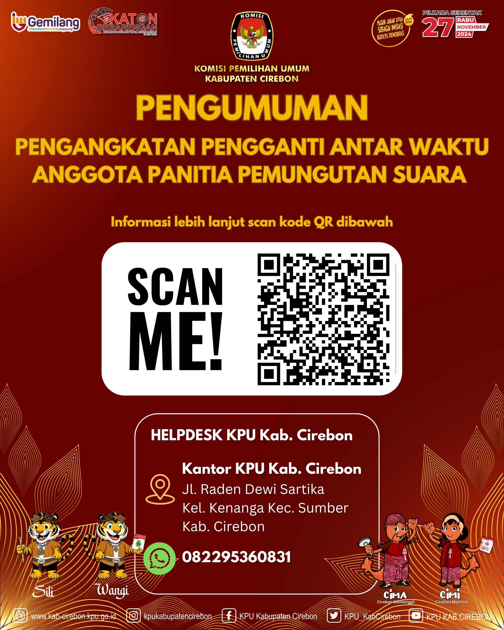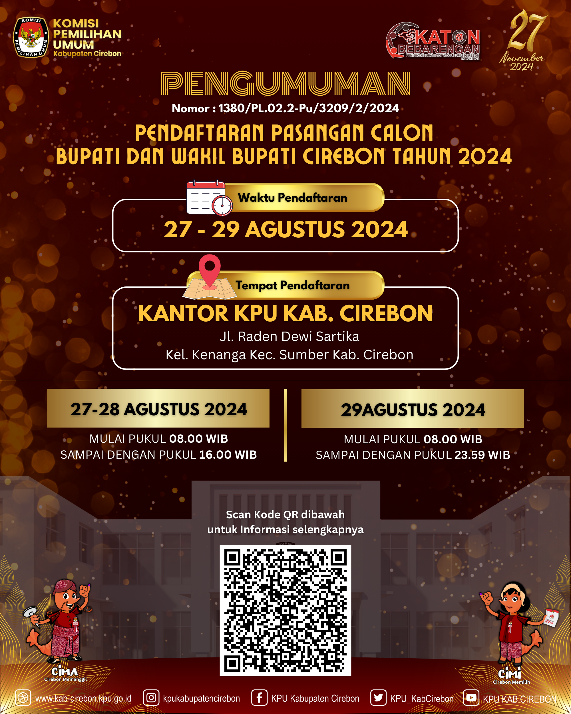 Dalam rangka Pengadaan Logistik Pemilihan Gubernur dan Wakil Gubernur, Bupati dan Wakil Bupati, serta Walikota dan Wakil Walikota Tahun 2024, KPU mengundang para pelaku usaha secara luring dan daring dalam acara Market Sounding yang akan dilaksanakan pada hari Senin, 8 Juli 2024 Pukul 09.00 WIB s.d selesai bertempat di The Ritz-Carlton Jakarta - Jl. Dr. Ida Anak Agung Gde Agung No. 1 Kav.E.1.1, Kuningan Timur, Setiabudi, Jakarta Selatan.