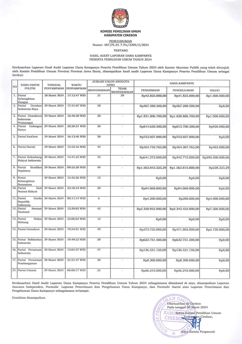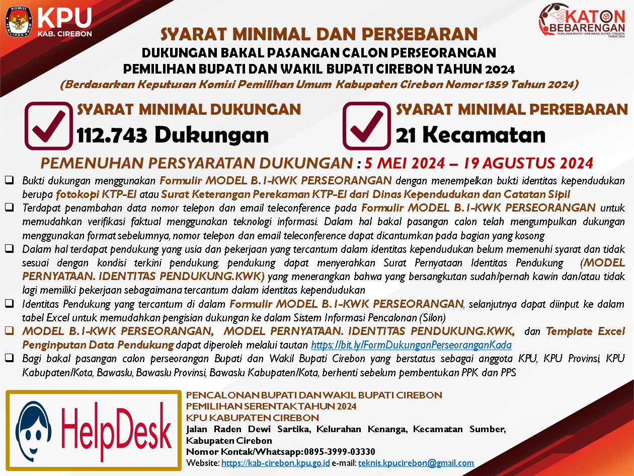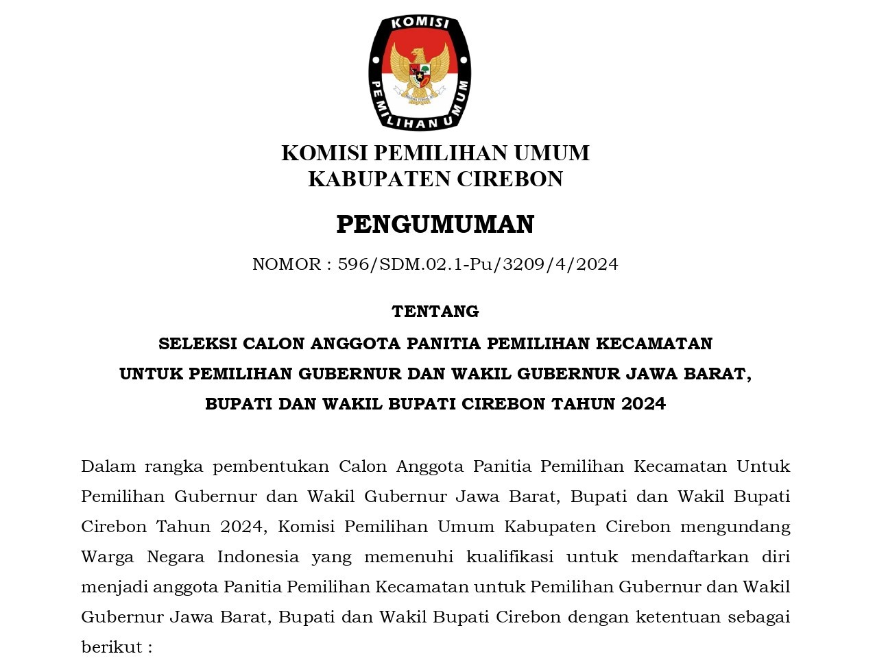 Berdasarkan Keputusan Komisi Pemilihan Umum Kabupaten Cirebon Nomor 1359 Tahun 2024: