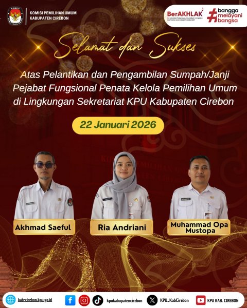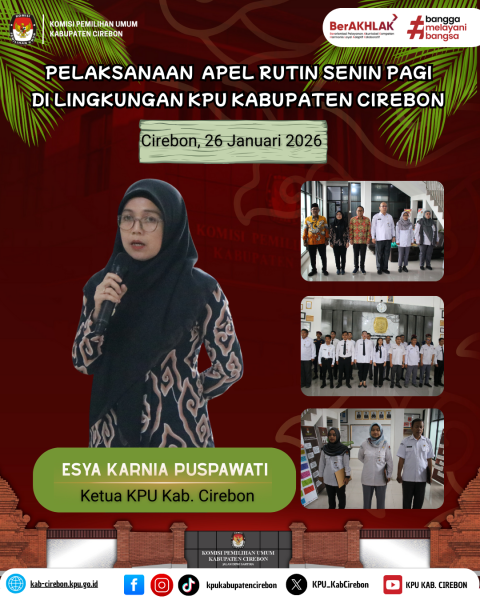 Penegasan tersebut Ia sampaikan saat bertindak sebagai Pembina apel rutin Senin pagi yang dilaksanakan di kantor KPU Kabupaten Cirebon, Senin (26/1/2026). Apel diikuti oleh Ketua dan Anggota KPU Kabupaten Cirebon serta seluruh jajaran sekretariat.
