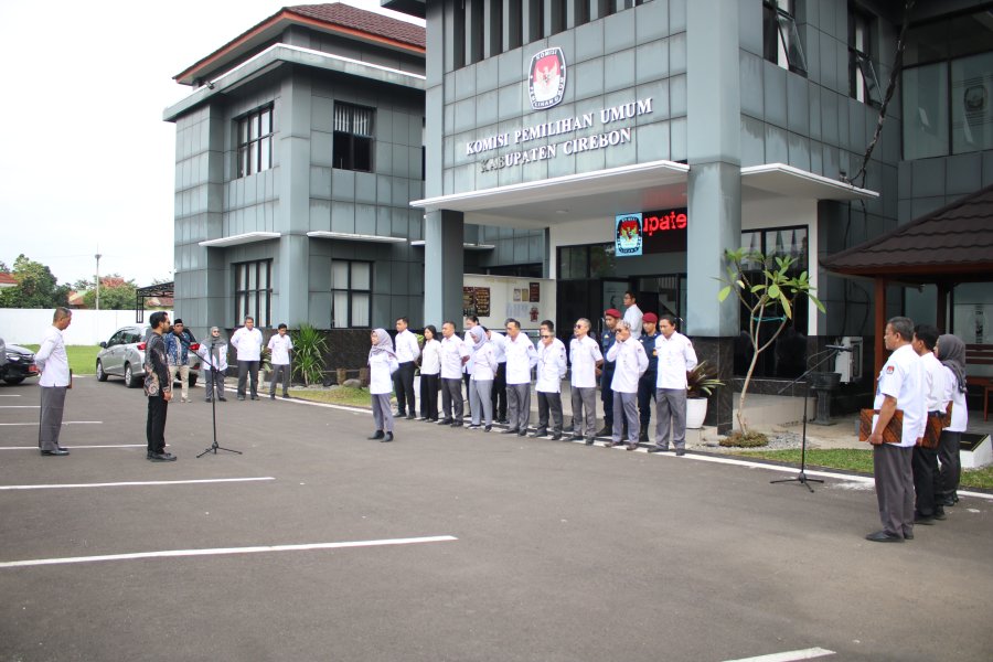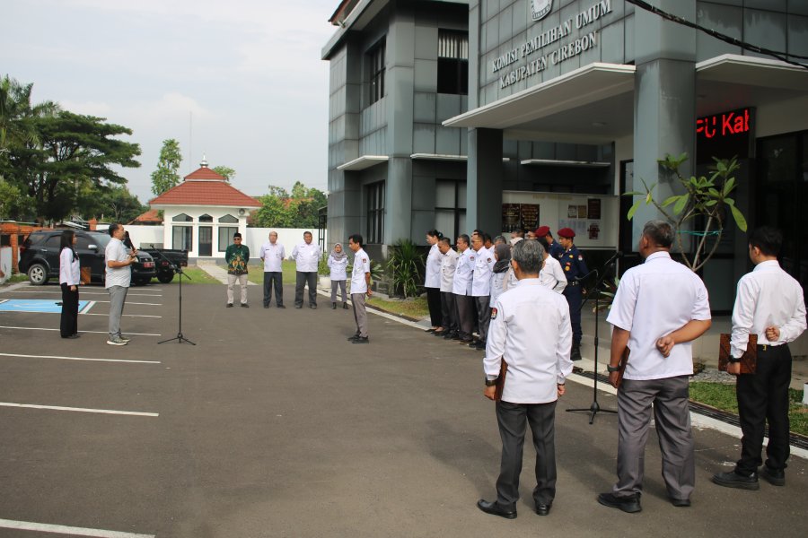 Penguatan semangat kerja, koordinasi, dan komunikasi kelembagaan menjadi penekanan utama dalam apel rutin Senin pagi KPU Kabupaten Cirebon. Ketua Divisi Hukum dan Pengawasan KPU Kabupaten Cirebon, Ujang Kusumah Atmawijaya, mengingatkan seluruh jajaran agar terus bekerja secara profesional, transparan, dan melembaga dalam menjalankan tugas dan tanggung jawab penyelenggaraan pemilu. Penegasan tersebut Ia sampaikan saat bertindak sebagai Pembina apel rutin Senin pagi yang dilaksanakan di halaman kantor KPU Kabupaten Cirebon, Senin (19/1/2026). Apel diikuti oleh Ketua dan Anggota KPU Kabupaten Cirebon serta seluruh jajaran sekretariat. Memasuki tahun 2026, Ujang menekankan pentingnya memahami dan mengimplementasikan Rencana Strategis (Renstra) KPU RI Tahun 2026–2030 sebagai arah kebijakan kelembagaan lima tahun ke depan. Renstra tersebut menjadi pedoman dalam mewujudkan kerja-kerja KPU yang efektif, efisien, dan berintegritas. Ia juga menegaskan bahwa KPU sebagai lembaga yang bersifat hierarkis harus menjunjung tinggi prinsip kolektif kolegial, yakni bekerja bersama secara setara melalui musyawarah dan konsensus serta menghindari keputusan yang bersifat personal. Setiap kebijakan dan tindakan, harus dilakukan atas nama lembaga, bukan individu atau kelompok. Melalui apel rutin ini, diharapkan soliditas serta penguatan kelembagaan internal KPU Kabupaten Cirebon terus terjaga dalam menghadapi dinamika tugas ke depan.