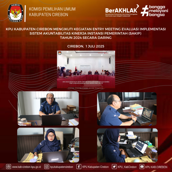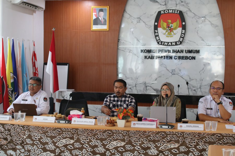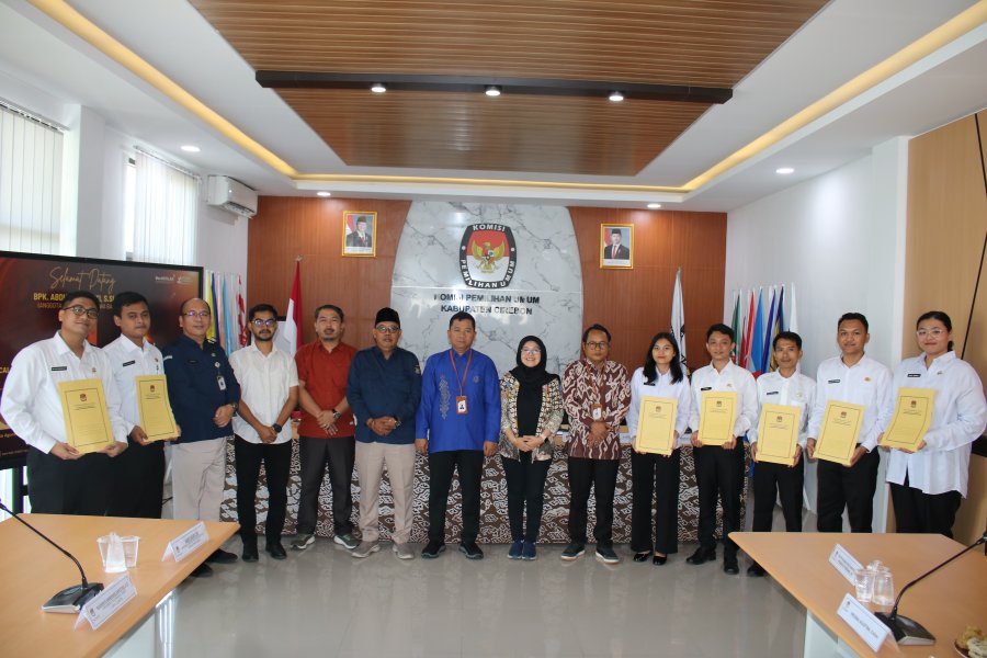 KPU Kabupaten Cirebon melaksanakan kegiatan pemanggilan melaksanakan tugas dan perkenalan CPNS Tahun Anggaran 2024 yang mendapatkan penempatan di Satker KPU Kabupaten Cirebon pada hari Selasa, 10 Juni 2025 pukul 09. 00 WIB s.d selesai bertempat di Aula Pangeran Walangsungsang KPU Kabupaten Cirebon. Hadir sekaligus memberikan arahan pada acara tersebut Ketua Divisi SDM dan Litbang KPU Provinsi Jawa Barat Abdullah Sapi'i, S.Si,. ME,. Ketua KPU Kabupaten Cirebon Esya Karnia Puspawati, SH., Ketua Divisi Perencanaan, Data dan Informasi Khairil Ridwan, SH., Ketua Divisi Sosdiklih, Parmas dan SDM Masyhuri Abdul Wahid, S.Sos,. Ketua Divisi Teknis Penyelenggaraan Apendi, SE., Ketua Divisi Hukum dan Pengawasan Ujang Kusumah Atmawijaya, S.Pd.I,. Sekretaris Andartua Sinaga, SE., M.Si, Para Kasubbag, ASN dan PPNPN Sekretariat KPU Kabupaten Cirebon. Hadir pula Calon Pegawai Negeri Sipil ( CPNS) Tahun Anggaran 2024 yang mendapatkan penempatan di Satker KPU Kabupaten Cirebon yaitu Putri Raisha Destankarani Permata Purnama, SH., Virginia Agustina, S.Kom., Ahmad Fadhol Dikjaya, S.I.Kom,. Ari Fadzri Ilahi, S.Kom,. Rahmat Aziman, S.Kom,. Dian Syahrul Hidayatullah, S.Kom,. dan Mellenio Kusuma Aji H, SH. Diakhir acara Ketua KPU Kabupaten Cirebon bersama pimpinan lainnya yang didampingi Ketua Divisi SDM dan Litbang KPU Provinsi Jawa Barat memberikan SK CPNS secara simbolis dan dilanjutkan dengan foto bersama.